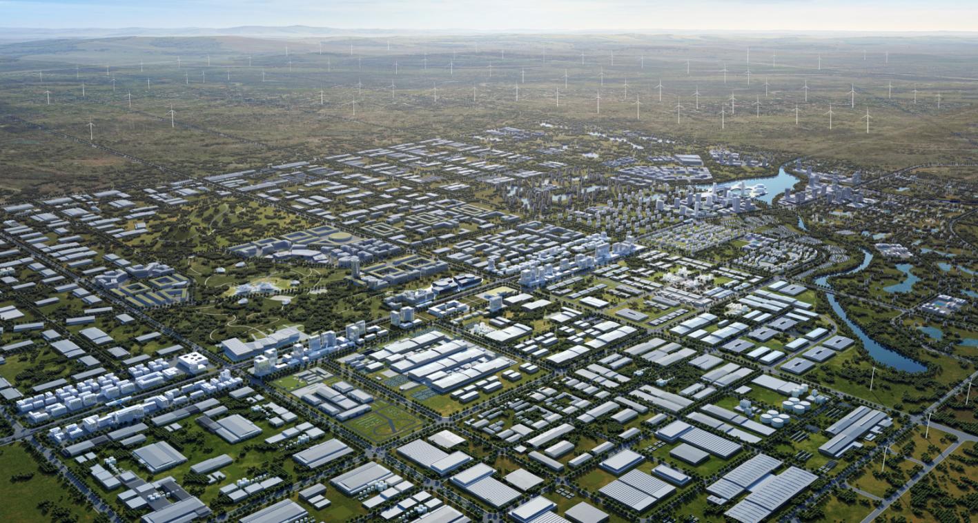 一侧是已经修建完毕的厂区,厂房内设备齐整、运行有序,有条不紊地生产出一件件高规格的新能源产品;另一侧,新厂房正在如火如荼的建设当中,将迎接更多“绿色伙伴”聚集于此。