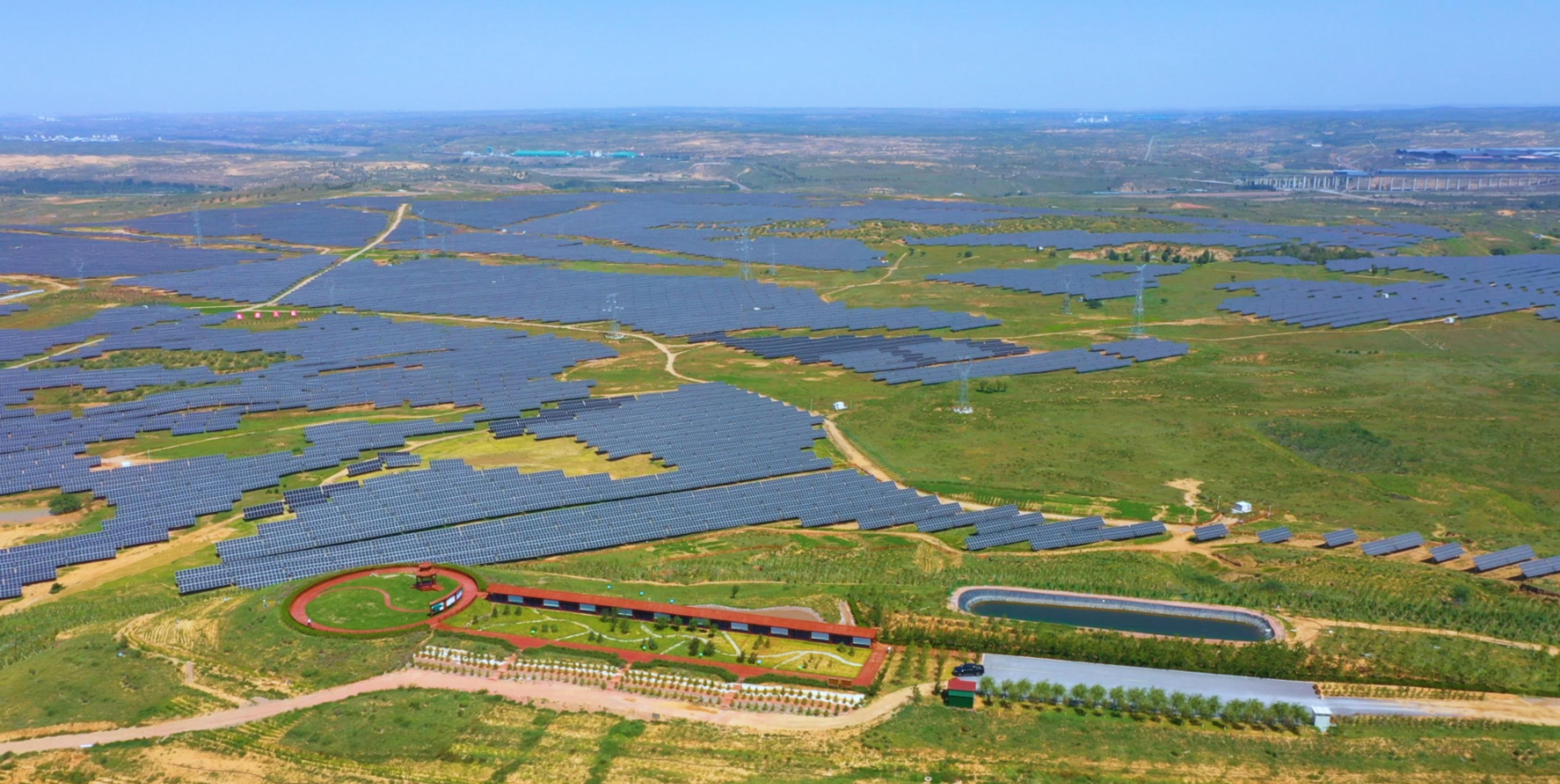 在库布其沙漠的这片“蓝海”之下,更有光伏治沙的生态建设,项目在延伸“光伏+生态治理+有机农林+沙漠旅游”模式的基础上,进一步补充提升了沙漠研学、智能科普、光伏田园、生态牧业等产业功能。板上发电、板下种植,这片由光伏电板组成的“蓝色海洋”,成为了新能源开发的响亮“名片”。